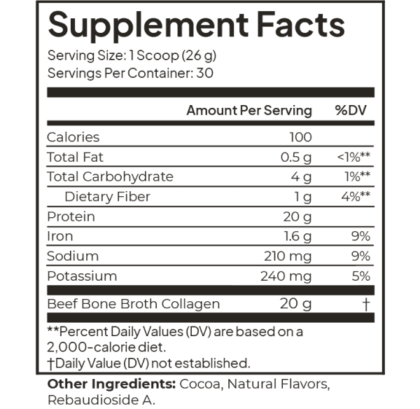 Trumeta bone broth protein supplies an amazing nutritional profile of over 30 amino acids, vitamins, and minerals. And our delicious all-natural cocoa flavor makes optimizing your protein intake as easy and tasty as pouring your morning coffee!